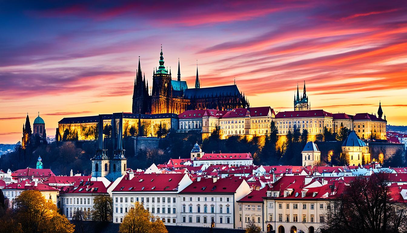 Prague Castle sits in the heart of the Czech capital. It’s a symbol of the country’s deep history and culture. This fortress dates back to the 9th century. It has seen many important events in politics, religion, and art.