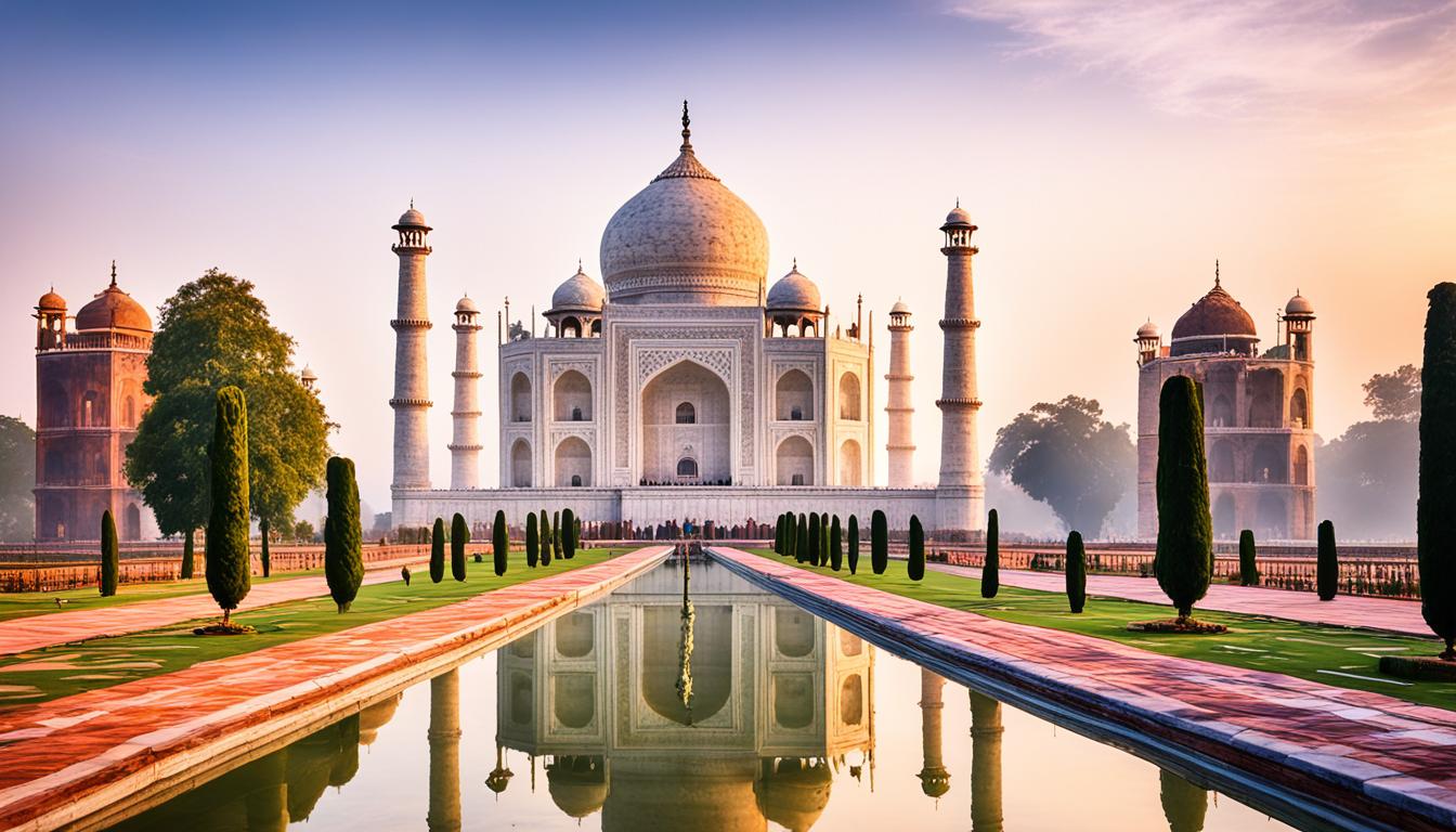 The Taj Mahal is more than just a beautiful building. It’s a cultural wonder that touches hearts worldwide. As a UNESCO World Heritage Site, it shows off India’s deep cultural roots. People from all over come to see its beauty and learn about India’s history.